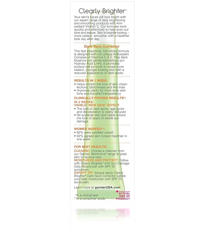 Garnier SkinActive Clearly Brighter Dark Spot Corrector with Vitamin C, 1 Fl Oz, (30mL), 1 Count (Packaging May Vary)