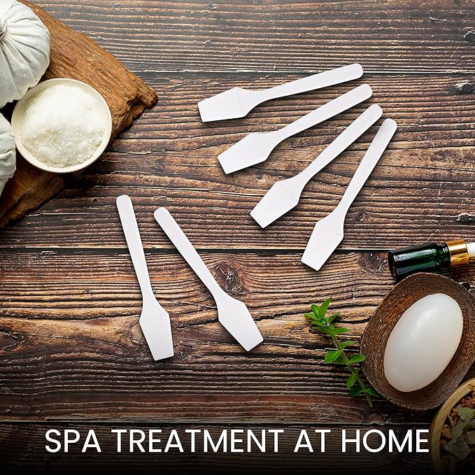 - Hygienically test, mix or apply make-up or skin care products with this disposable plastic white spatula.