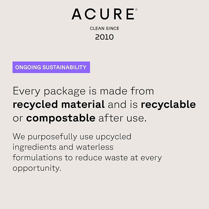 - VEGAN, CRUELTY-FREE BEAUTY - By choosing Acure, you're embracing a vegan, cruelty-free approach. We meticulously source the finest, premium-grade ingredients to pamper you. Absolutely no parabens, sulfates, formaldehyde, paraffin, mineral oil, or animal testing.