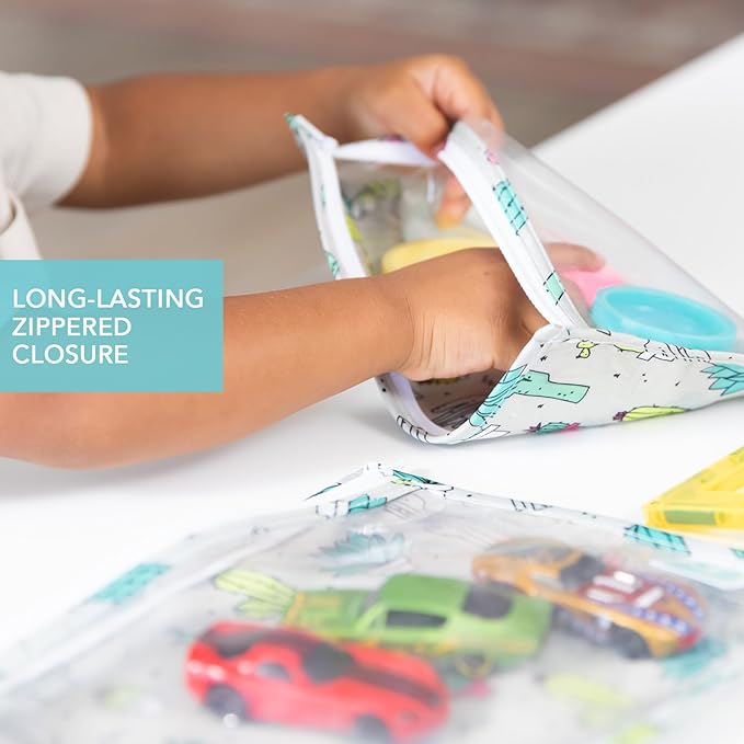 - REUSE AND REDUCE WASTE – The smart alternative to single-use plastic bags; these bags are made from Bumkins' original waterproof fabric that’s both soft and strong, a secure zipper closure; tough enough for daily use