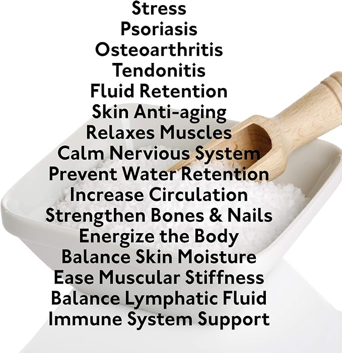 - Improves Skin Condition: Medical studies prove that our bath salts can improve skin conditions like psoriasis and eczema. It's more effective than dr teals, sulfur soap, or foot soak and acts as an excellent body exfoliator.