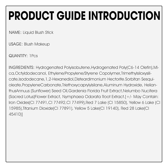 - 【Highly Pigmented & Blendable】Our Liquid Blush has extremely high pigment concentration and plasticity. It only takes one swipe to achieve the multi-layer effect of other blush in an instant. Its blendable and smooth characteristics create an exquisitely delicate and elegant makeup look, making the facial contour more natural and three-dimensional.