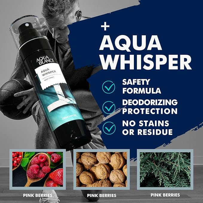 - Aqua Whisper boasts a captivating blend of top notes of pink berries, middle notes of walnut leaf, and base notes of cedar, sandalwood, and myrrh. The result is a fragrance that is both invigorating and comforting, perfect for any occasion.