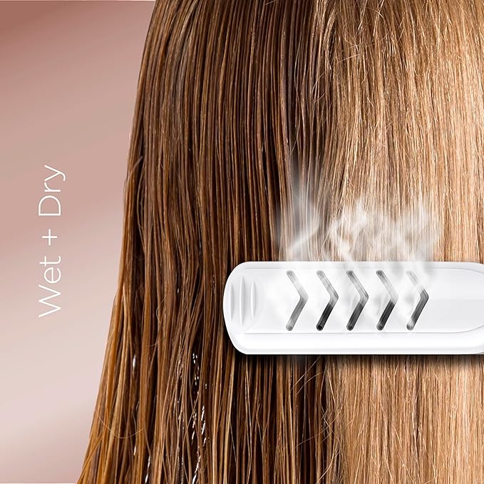 - Double Ceramic Flat Iron: This flat iron features 1.5 inch double ceramic coated plates delivering gentle, even heat and frizz-free shine. Straighten as you dry for 2-in-1 ease and convenience with this Wet-to-Dry hair straightner.