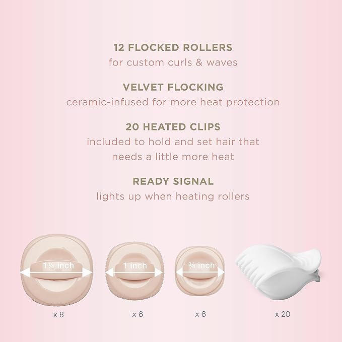 - Hot Rollers For Voluminous Curls: These 20 rollers use Flocking to provide an even heat transfer for long lasting curls while the velvety covering on the rollers helps protect hair from heat damage. They heat up quickly and evenly in 85 seconds.