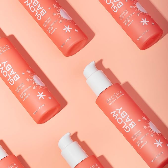 • BRIGHTENING VITAMIN C FOR GLOWING SKIN – Get instantly more radiant, even-toned skin with this vitamin C-enriched body lotion. Infused with Pacifica’s Glow Baby brightening complex featuring vitamin C and superfruit kakadu plum (a rich natural source of C), it targets dullness and helps fade the appearance of dark spots, sun damage, and discoloration while evening out skin tone and boosting overall luminosity. Your skin will drink up the antioxidants in this revitalizing formula, revealing a youthful radiance from neck to toe and improving the look of ashy, dull skin with every use.