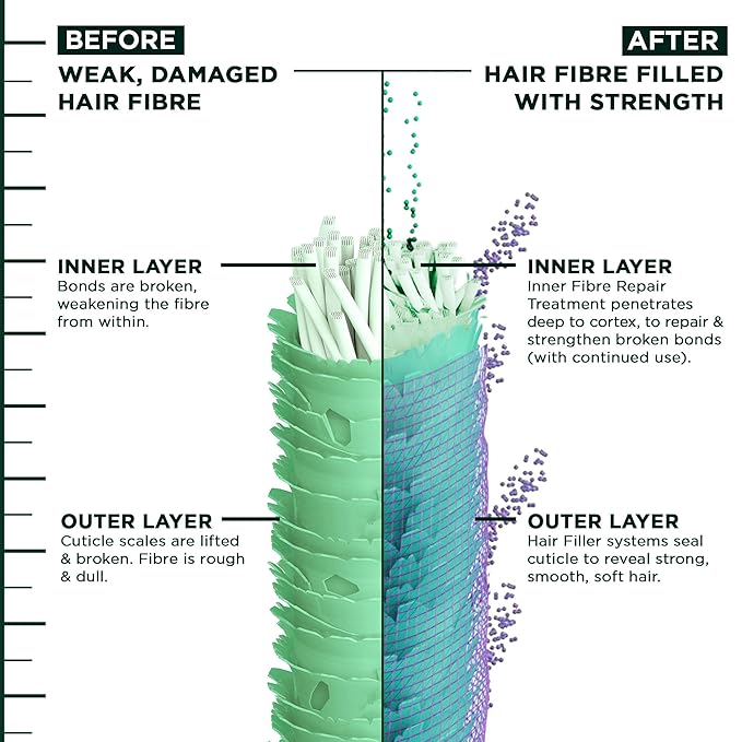 - Color Repair System: Reverse up to 1 year of damage for smoothness and get up to 9X smoother hair and 4 weeks vibrant color with use of Inner Fiber Repair Treatment and Color Repair Shampoo, Conditioner, and Serum vs. non-conditioning shampoo