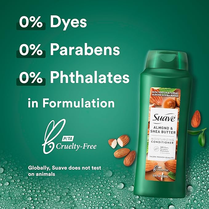 Suave Moisturizing Conditioner with 100% Natural Almond & Shea Butter, No Dyes, No Parabens, No Phthalates, 28 oz Pack of 4
