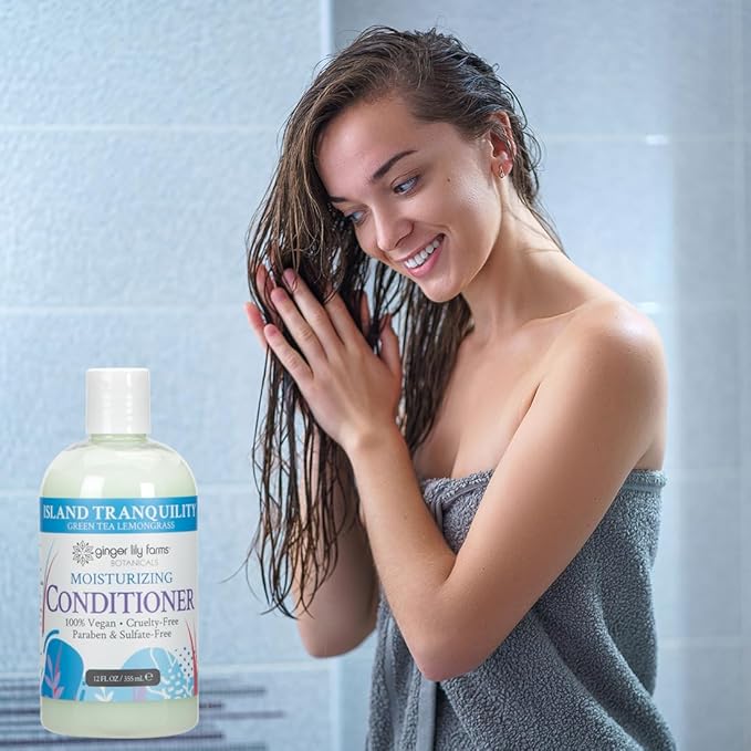 Ginger Lily Farms Botanicals Moisturizing Conditioner for Dry Hair, Island Tranquility, 100% Vegan & Cruelty-Free, Green Tea Lemongrass Scent, 12 Fl Oz