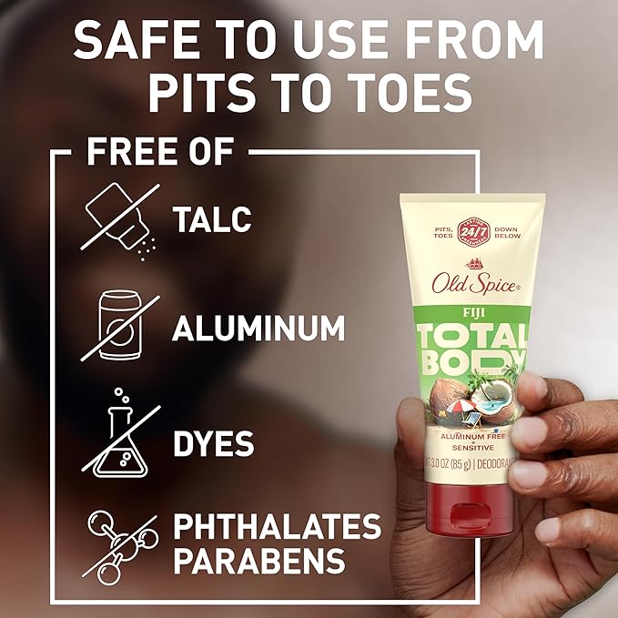 Old Spice Whole Body Deodorant for Men, Total Body Deodorant, Fiji Scent, Aluminum Free Deodorant Cream for 24/7 Freshness // Dermatologist Tested Whole Body Deodorant, 3.0 oz