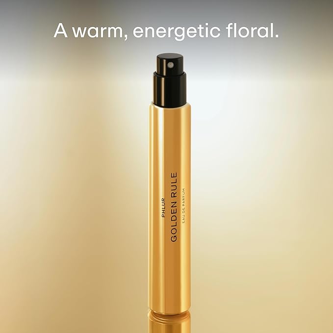 PHLUR Golden Rule Eau de Parfum - Travel Size Perfume for Women & Men Fragrance - Fruity Floral Perfume with Mandarin, Pink Pepper, Pear, Jasmine, Coconut Milk, Sandalwood & Vanilla Cream (9.5mL)