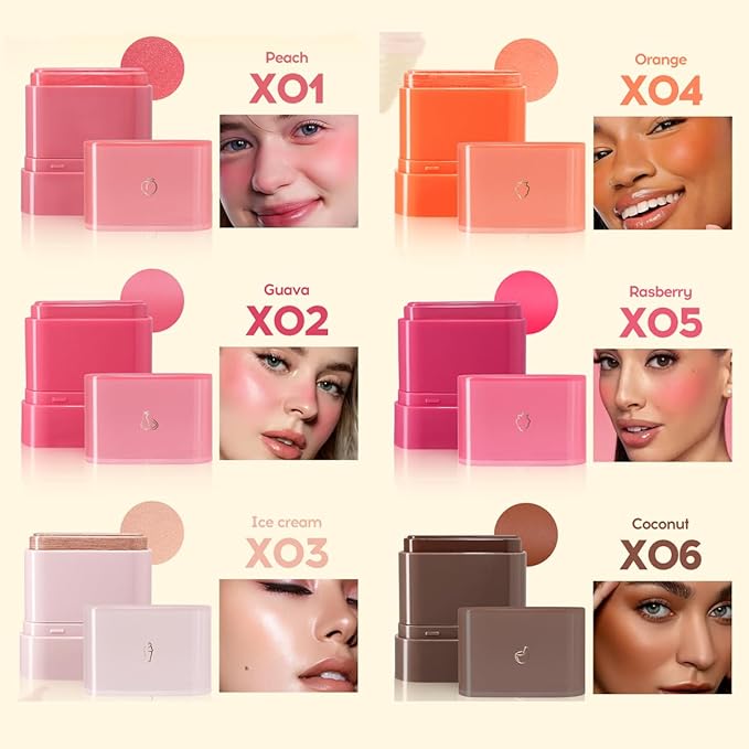- 【Rich and natural colors】Our blush sticks come in six rich and bright shades, such as 01# Peach, 02# Guava, O3# Ice cream,etc., to create a natural and healthy cheek makeup for you.