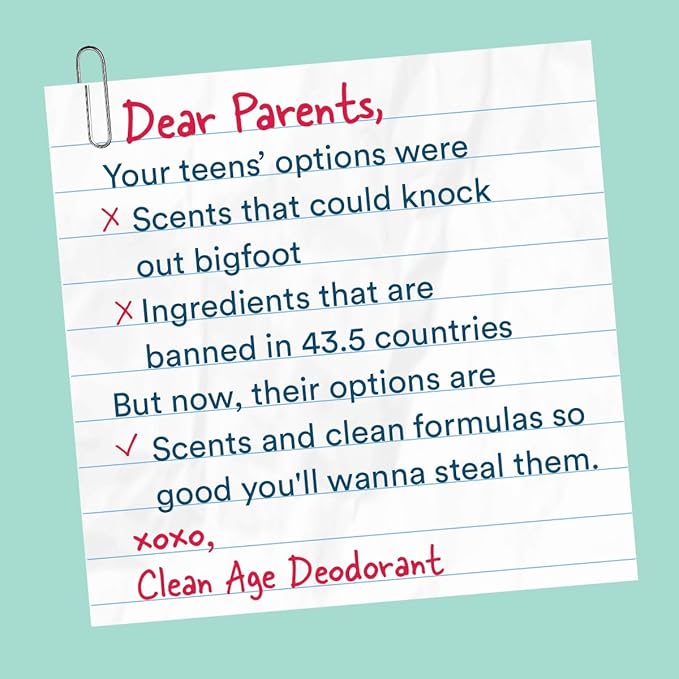 - Vegan, paraben-free, no aluminum deodorant; Clean Age body spray and deodorant for kids has a 100% vegan formula with no paraben and no aluminum, the best body spray for sensitive teen skin